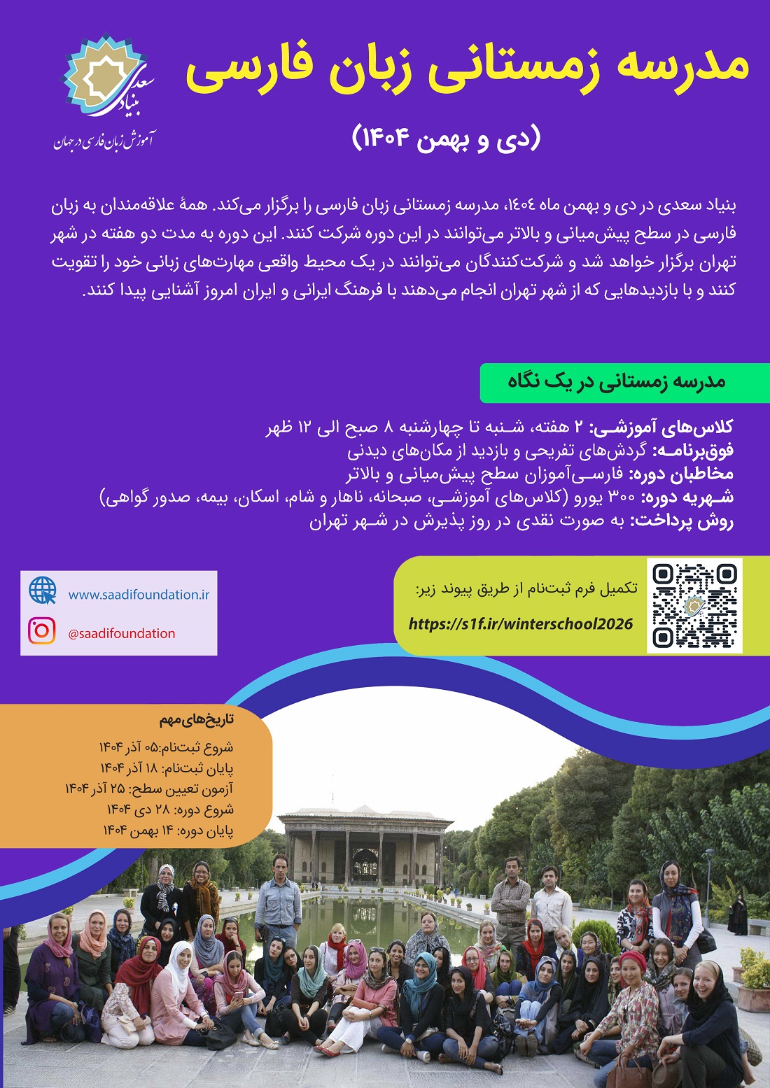 اطلاعیه مدرسه زمستانی زبان فارسی بنیاد سعدی